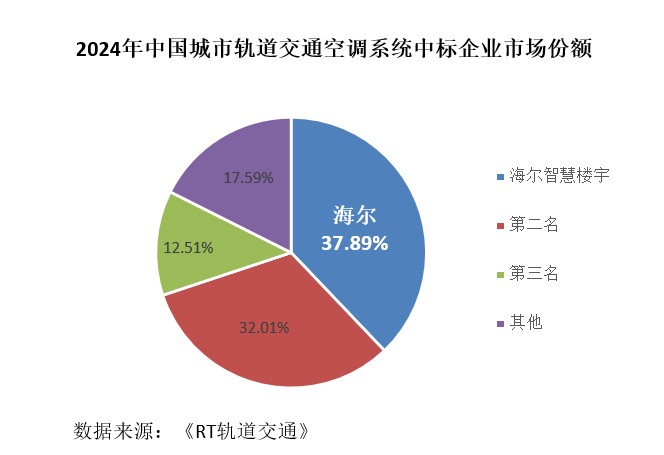 近日,《RT轨道交通》发布2024年中国城市轨道交通空调系统中标数据,TOP3品牌市场占比超80%。其中,从中标项目数、中标金额上看,海尔智慧楼宇均实现了市场第一,市场份额达37.89%。在市场占比再创新高的同时,海尔智慧楼宇已连续7年居行业TOP1。